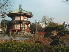 Ueno Park (, Ueno Kōen) is a large public park next to Ueno Station in central Tokyo. The park grounds were originally part of Kaneiji Temple, which used to be one of the city's largest and wealthiest temples and a family temple of the ruling Tokugawa clan during the Edo Period. Kaneiji stood in the northeast of the capital to protect the city from evil, much like Enryakuji Temple in Kyoto.