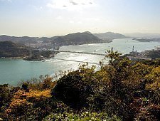 The Kanmon Bridge is one of the major attractions in Shimonoseki. The suspension bridge has a length of 1068 meters and six car lanes, connecting Honshu to Kyushu across the strait. There are a few sites of interest around the bridge:
