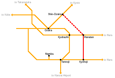 As the first section of the "Osaka Outer Loop Line" project, the Osaka Higashi Line will start service between Kyohoji and Hanaten Stations on March 15. The extension from Hanaten to Shin-Osaka Station is planned for spring 2012.