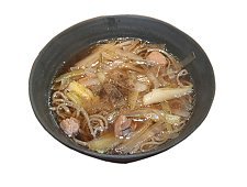 Soba served in a soup (usually the hot ones) are enjoyed by using your chopsticks to lead the noodles into your mouth while making a slurping sound. The slurping enhances the flavors and helps cool down the hot noodles as they enter your mouth. The broth is drunk directly from the bowl, eliminating the need for a spoon. It is not considered rude to leave some unfinished soup in the bowl at the end of the meal.