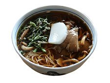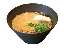 Soba (‚»‚Î) noodles are noodles made of buckwheat flour, roughly as thick as spaghetti, and prepared in various hot and cold dishes. Soba dishes are very popular and easily available nationwide. As 100% buckwheat soba noodles tend to be brittle, many restaurants add some wheat flour when preparing their noodles. Depending on the shop, the percentage of buckwheat flour in soba noodles typically ranges between 40% and 100%.