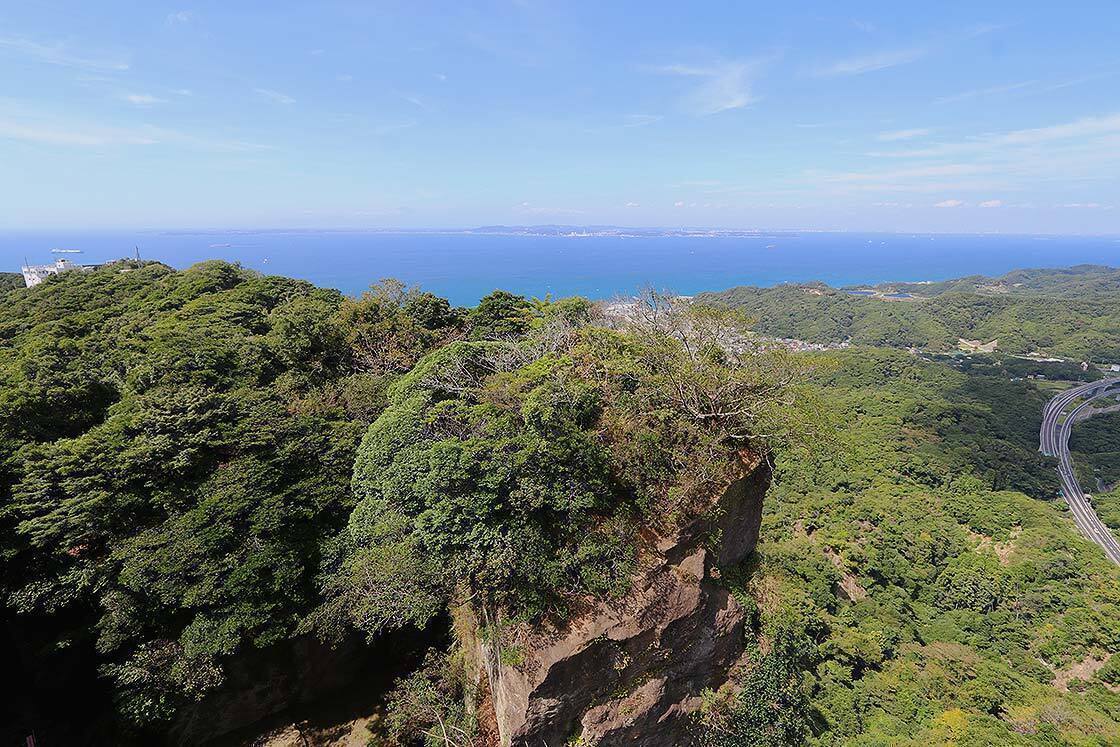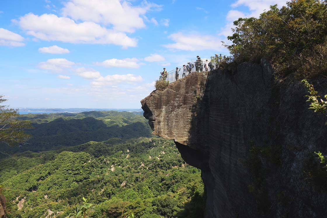 Just a couple of minutes' climb from the statue is another of the mountain's most famous spots, the Jigoku Nozoki - a dramatically overhanging rock ledge with a breathtaking view across the Tokyo Bay and back along the peninsula's east coast.