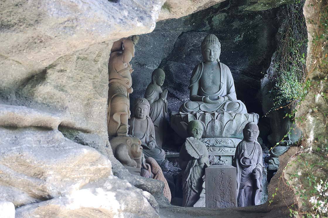 Together with Aragaki-san - my guide for the day from specialist local company WEGUIDE Nokogiriyama - I set off from a parking lot in neighboring Kyonan on a fairly relaxed three-hour hike taking in some of the mountain's best-known sights and viewing spots. Soon chatting away easily in English about the surrounding landscape and its long history, we turned onto an old sando or temple approach before slipping through the treeline and onto a worn mountain path.