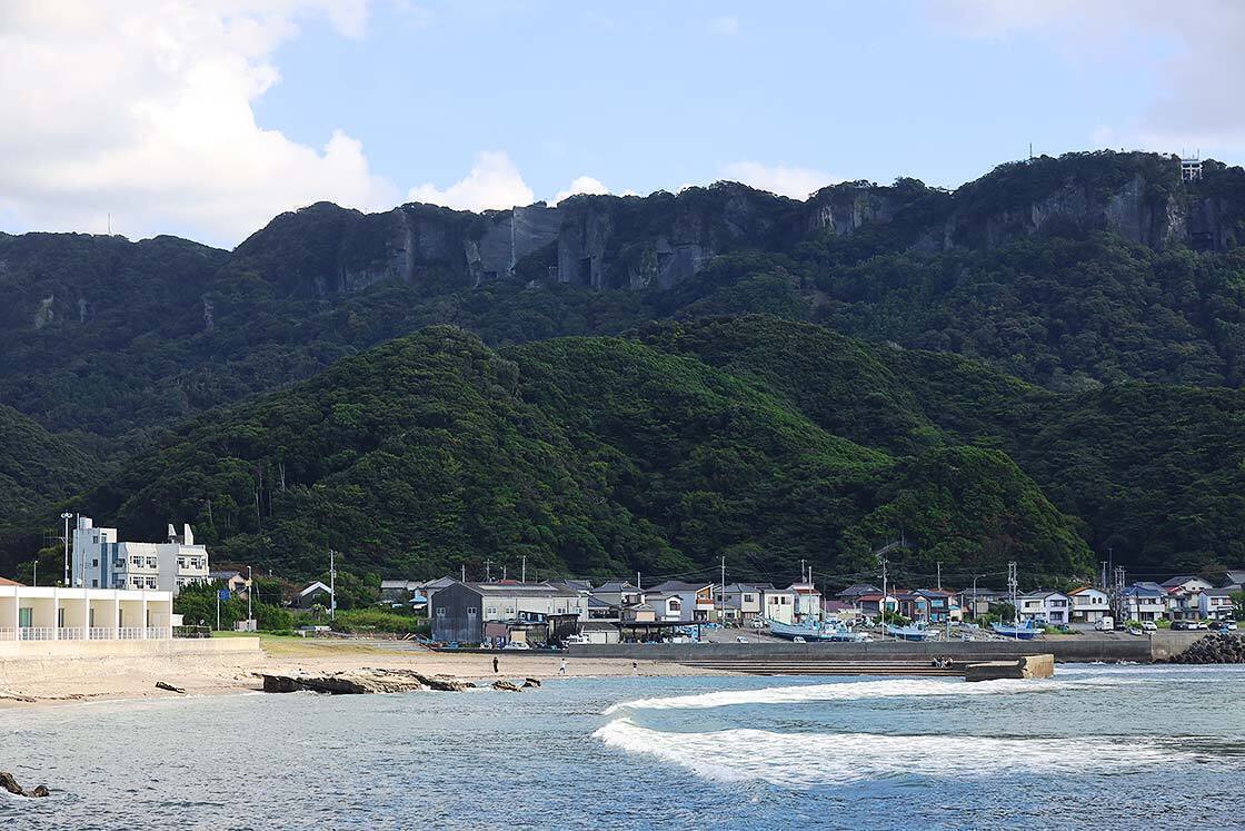 Rising to just 329 meters at its highest point, Mount Nokogiri may be a small mountain yet it still towers over the surrounding landscape, running east to west between the two coastal towns of Kyonan and Futtsu. Unusually long and straight, its ridgeline tapers sharply into a narrow and slightly jagged edge, long ago earning the mountain its name, meaning "sawblade" - the effect made even more prominent by deep striations in the rock from centuries of quarrying.