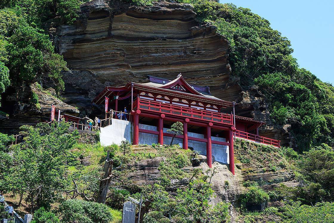 My time on the peninsula was almost at an end, but I was keen to make one final stop, another 30 minutes' drive along the east coast in Tateyama City. Here, clinging to a sheer cliff face on the side of Mount Funakata is the Gake Kannon Hall of Daifukuji Temple - one of the best-loved and most distinctive Buddhist buildings in Chiba Prefecture.