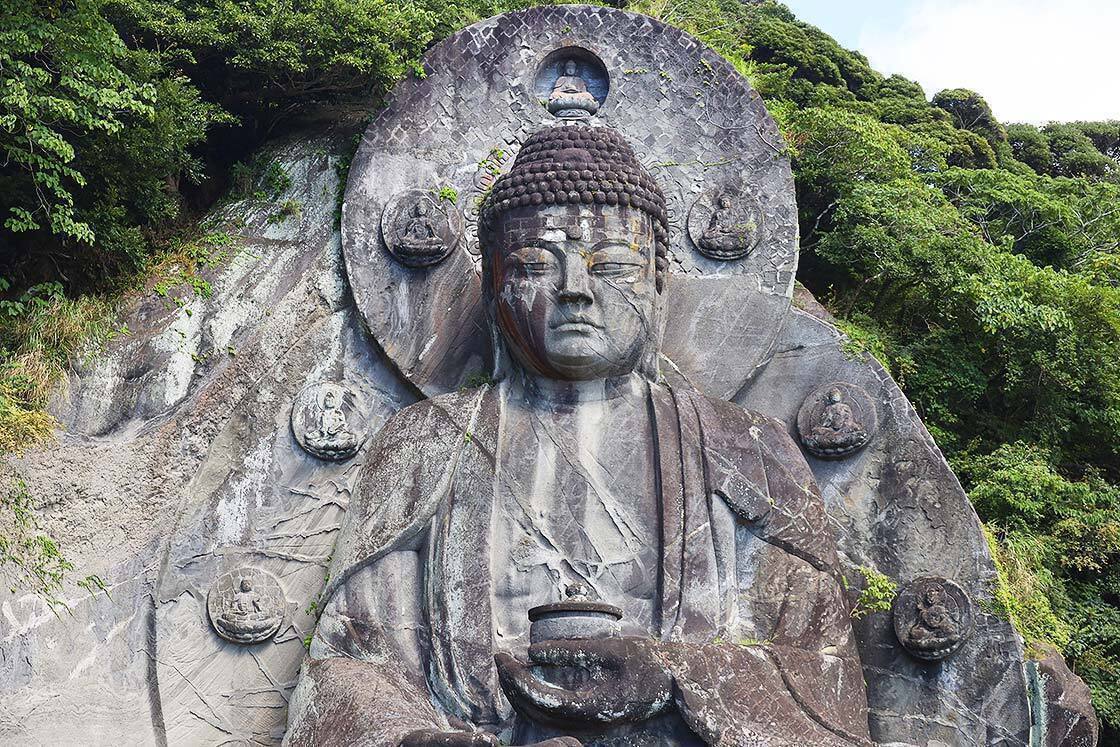 In 1969, a project to restore and expand the original to include the Buddha's lower half, while a much smaller seated Buddha - originally in the palm of the Daibutsu's hand - was relocated above its head, where it now joins a halo of seven such figures. At 31 meters, it is just over twice the size of the bronze daibutsu at Todaiji Temple in Nara and exudes a strikingly serene aura.