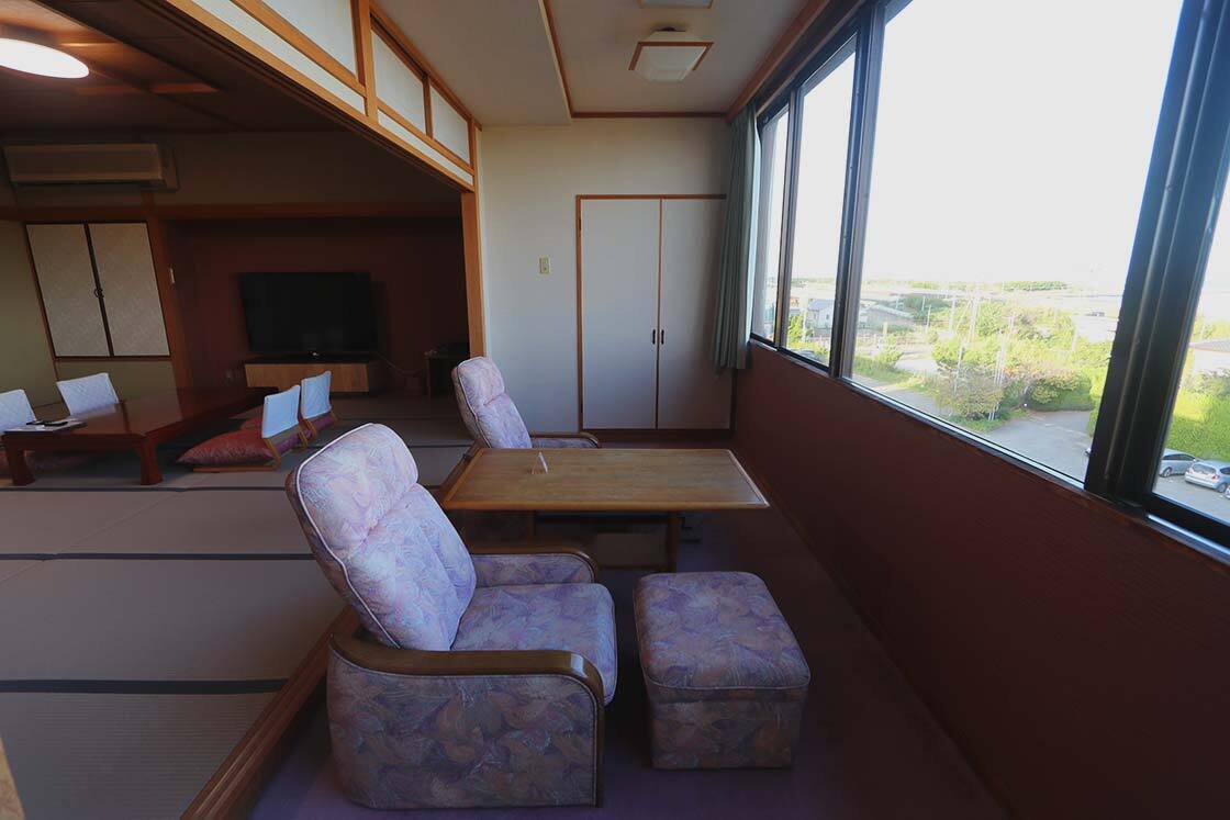 Guest rooms come in a variety of types, from simple and affordable Japanese-style spaces to larger suites equipped with private baths. The overall feel is relaxed and unpretentious, with enough comfort and space to make it ideal for couples or families seeking a quiet coastal retreat.