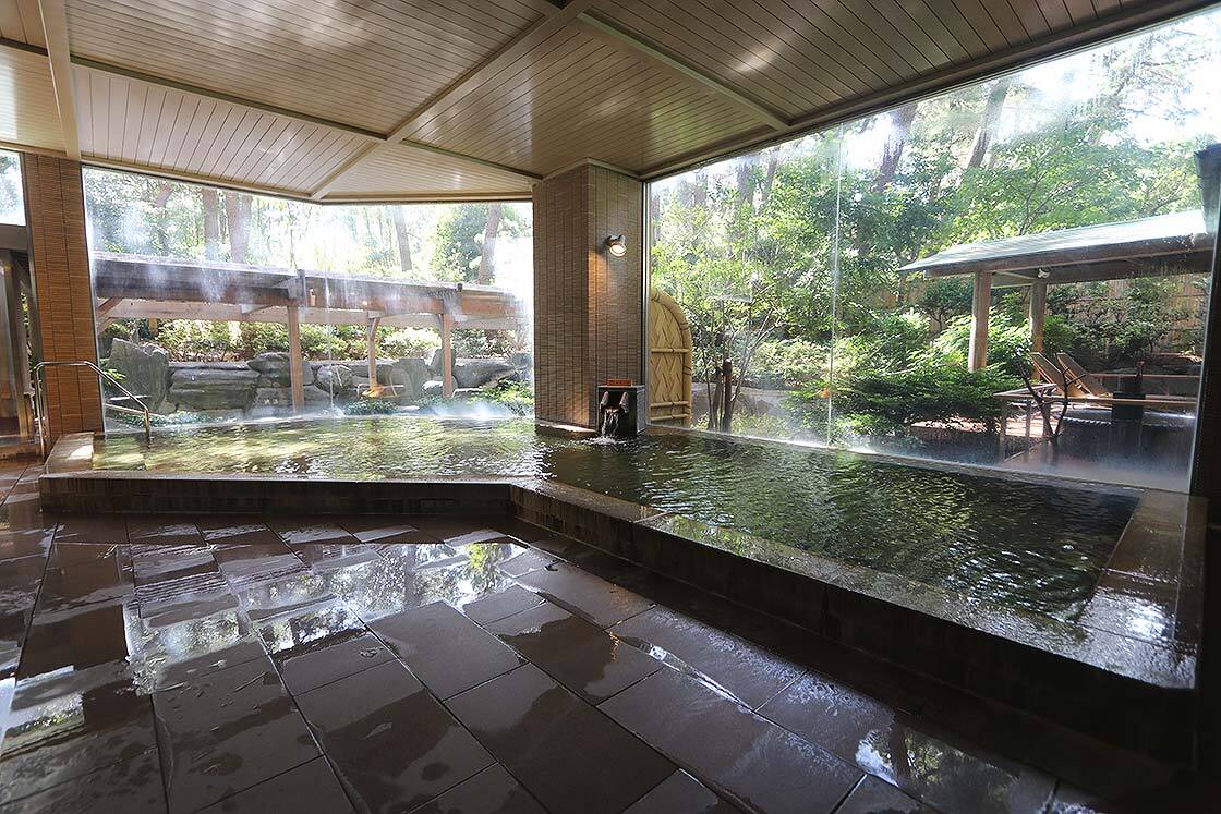 Baths are fed naturally from the source of Kominato Onsen, which though lacking the coloration and mineral richness of some mountain springs, is smooth, relaxing and said to come with a range of health benefits, from relieving tiredness to improving the skin. In addition to the main public baths, annex guests get free access to a rooftop spa area with heated infinity pool and sauna, also available to those staying at the main building for a fee of 2,200 yen.