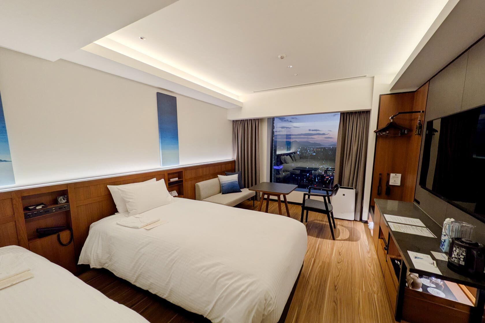 After gaining a renewed appreciation for the joys of life, I returned to the station and hotel. As it was already afternoon, I opted for a simple second half of the day by browsing the souvenirs at the station's newest addition, the minamoa shopping complex. Within minamoa there are a lot of restaurants, so of course I had to get some Hiroshima style Okonomiyaki at Kuraya on the sixth floor. There, you can choose to add soba or udon to your okonomiyaki, and I tried a spicy one and the Kuraya special with videographer Aimee. I didn't have to go far for my hotel either, which was the Hotel Granvia Hiroshima South Gate, on the seventh floor. It was so nice to have everything close together!