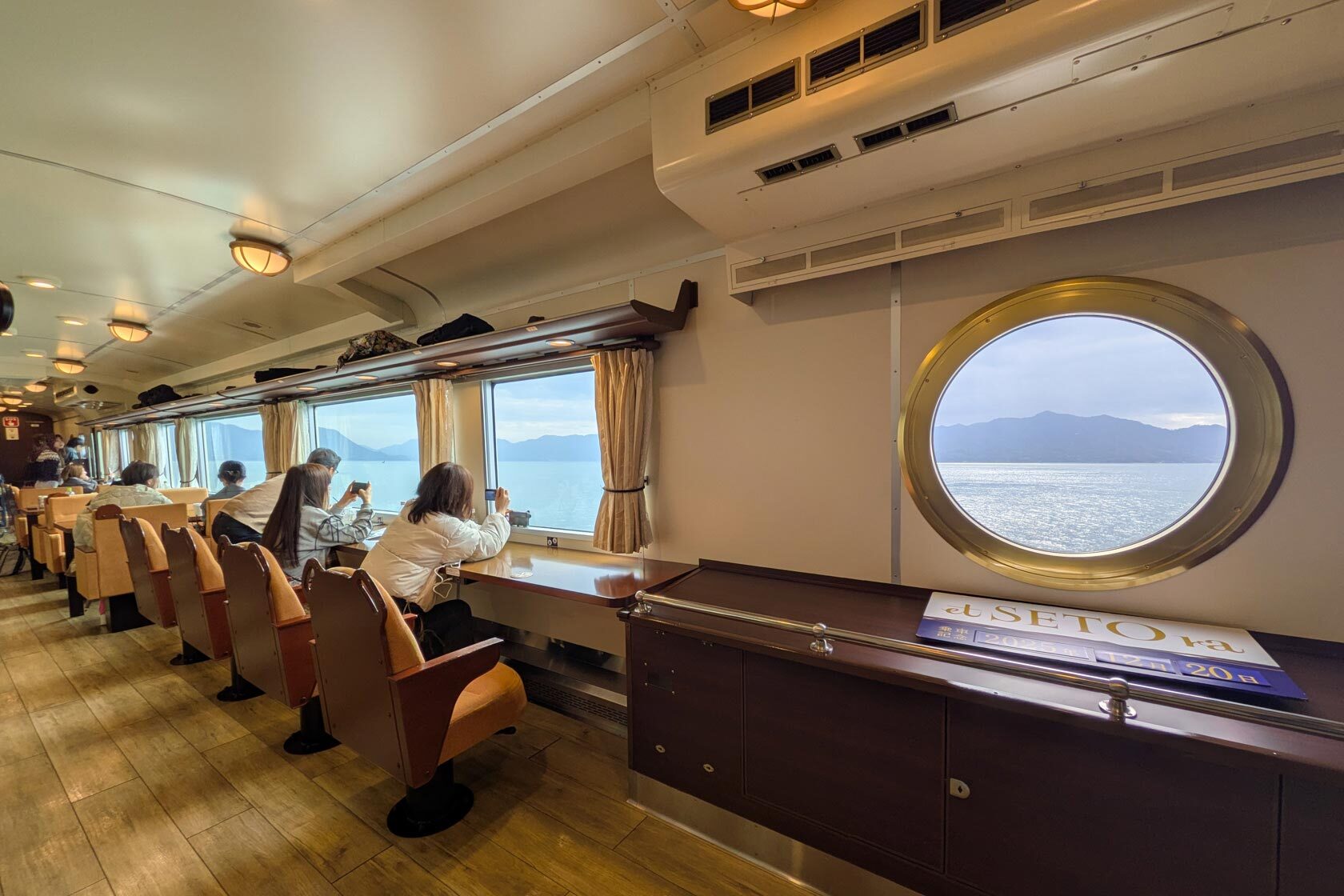 My second day started with a fun ride on the etSETOra train, which gets its name from the Seto Inland Sea that it rides alongside, combined with "et cetera." The tickets go on sale exactly a month before your chosen ride date, and tickets were already disappearing on that very day, so I recommend planning your booking in advance! The train is a comfortable and cozy sightseeing train with some lovely sea views and a cute bar counter for food and drinks.