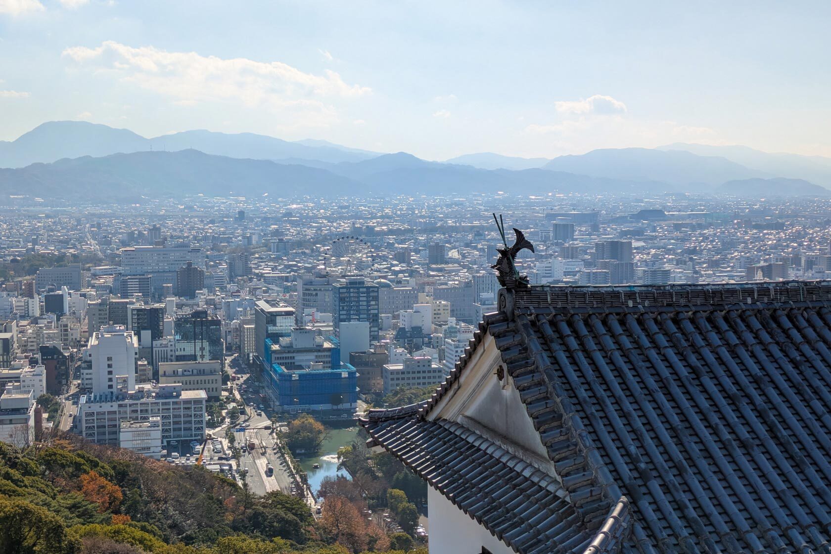 Iwakuni is known for the famous Kintaikyo Bridge with its characteristic arches. The bridge was ordered for construction by the lord of Iwakuni, Kikkawa Hiroyoshi, in 1673, and has been maintained and renovated over the years in-keeping with the original design. Once I crossed the bridge, it was just a short walk to the cable car station which took me up to Iwakuni Castle. It has a beautiful view over Iwakuni, and this current renovated version has lasted decades, while the original lasted only seven years!