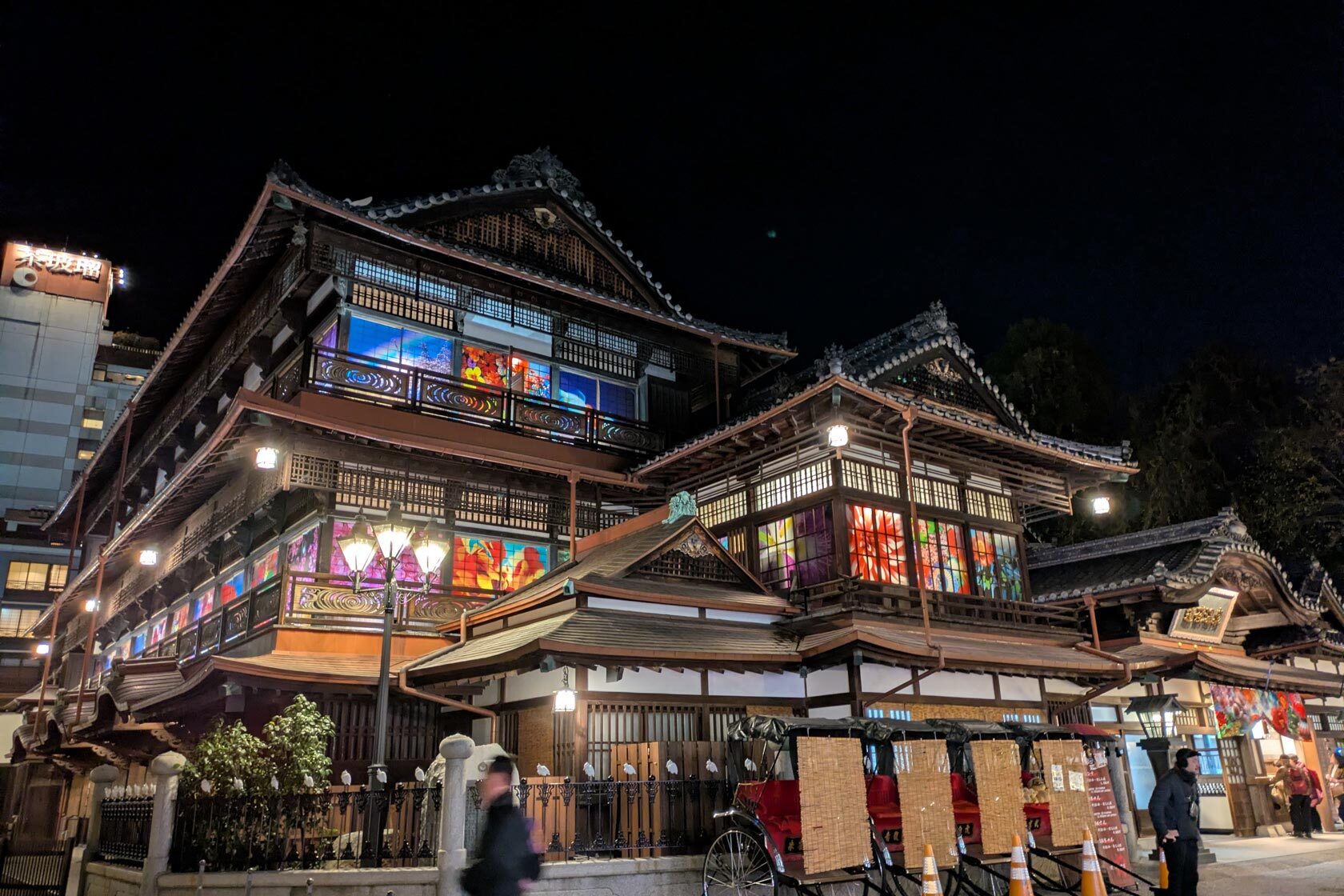 After exploring the keep, I then headed back to the trams to visit Dogo Onsen Honkan. This famous hot spring bath facility is known for being part of the inspiration for the bath house in Spirited Away, and from the front I could certainly see the resemblance. Inside I relaxed in the baths then double relaxed in a private rest area that I had rented just for me, where I was brought tea and a small local sweet. After all that relaxation I was ready to fall right to sleep on the ferry back to Hiroshima!