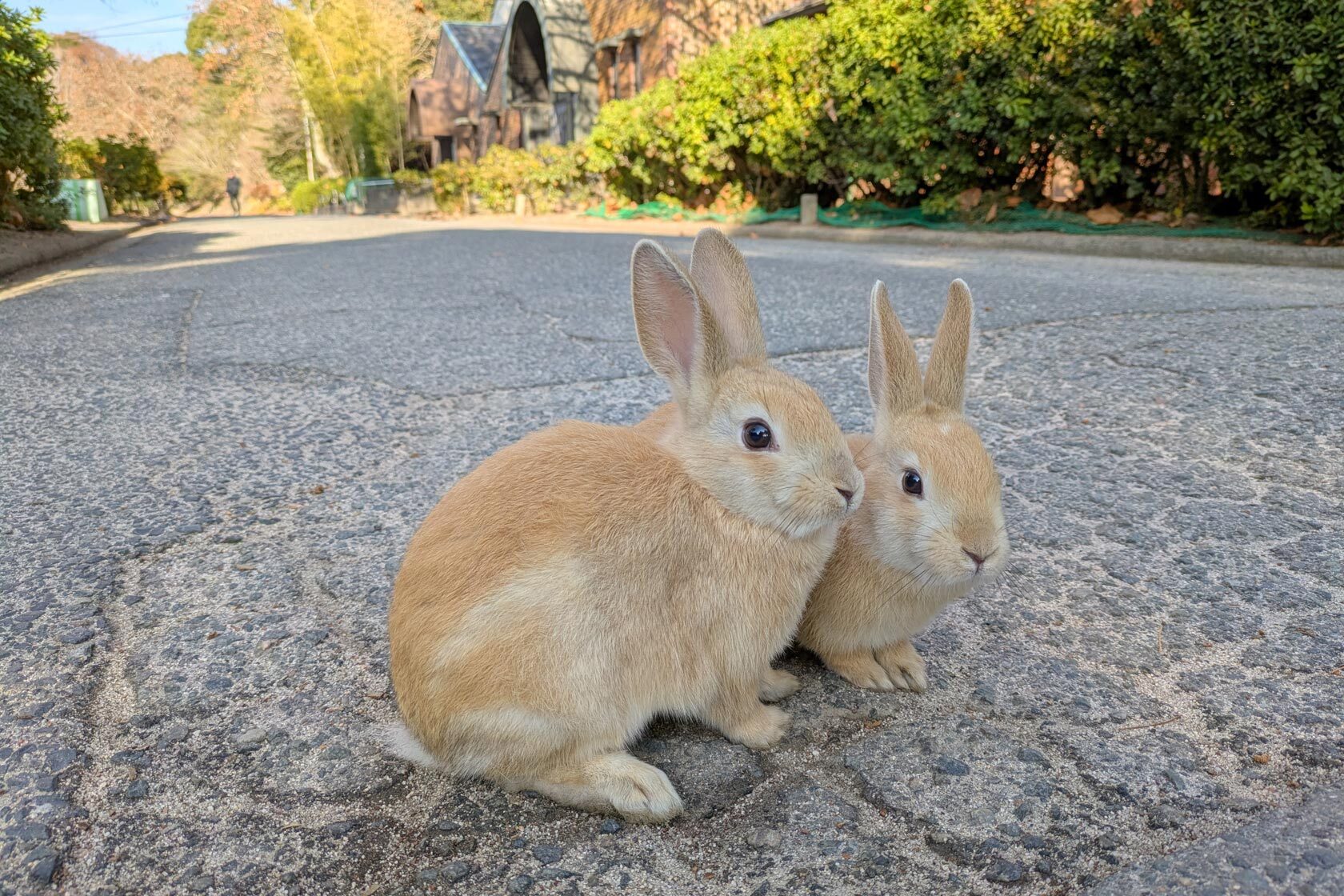With the convenience of just heading downstairs to get the train, I had a fairly easy morning today as I made my way to Okunoshima, AKA Rabbit Island. It takes about 2 hours to get to Tadanoumi Station with one train change, followed by a 10-minute ferry. Then, you can explore the island of bunnies! It's an interesting island, because it was actually used for chemical weapons manufacturing, and then many years after, rabbits were released on the island and bred to cover the land completely! Numbers have decreased over the years, but there are still small groups of cute rabbits bouncing around amid the palm trees, beaches, and the island's central hotel.