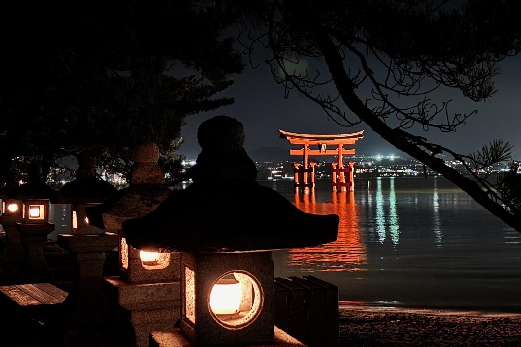I then got the bus back to Iwakuni Station, where I got the train to Miyajimaguchi Station, and finally the ferry across to Miyajima. Miyajima is a classic Hiroshima sightseeing spot, but to make things a bit more interesting I decided to stay a night on the island so that I could get some fun night and morning views without many people, as it can be pretty crowded during the day. I felt good about my decision when I was able to walk around without grappling with my heavy bag through the crowds. I'm writing today's entry from the Kikunoya hotel, too, full from a wonderful kaiseki dinner and feeling satisfied after seeing the beautiful sight of the torii gate lit up at night.