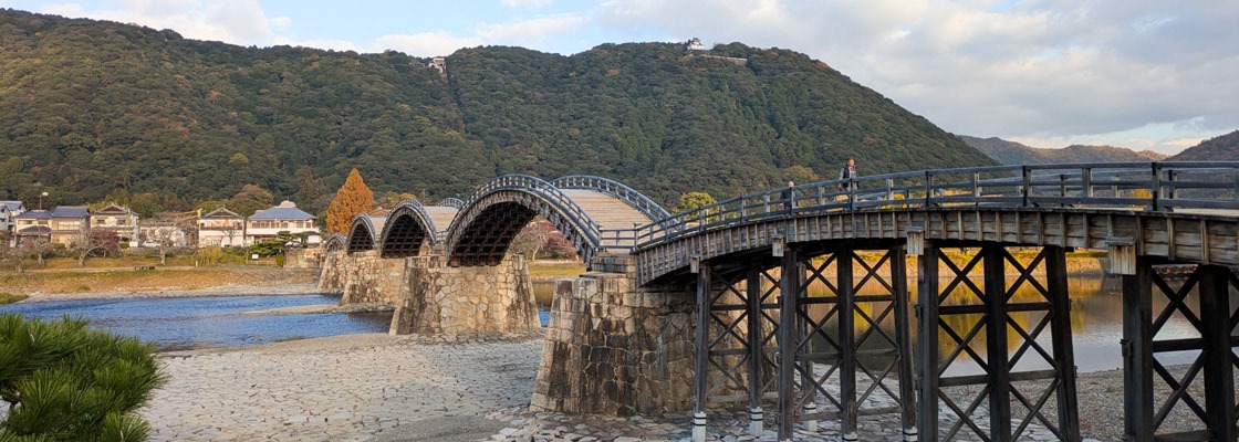 Iwakuni is an area just outside of Hiroshima Prefecture known for its historic Kintaikyo Bridge. You can get there by train to Iwakuni Station, from where you can visit the bridge, the castle, and wander through the town.