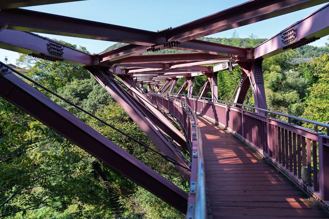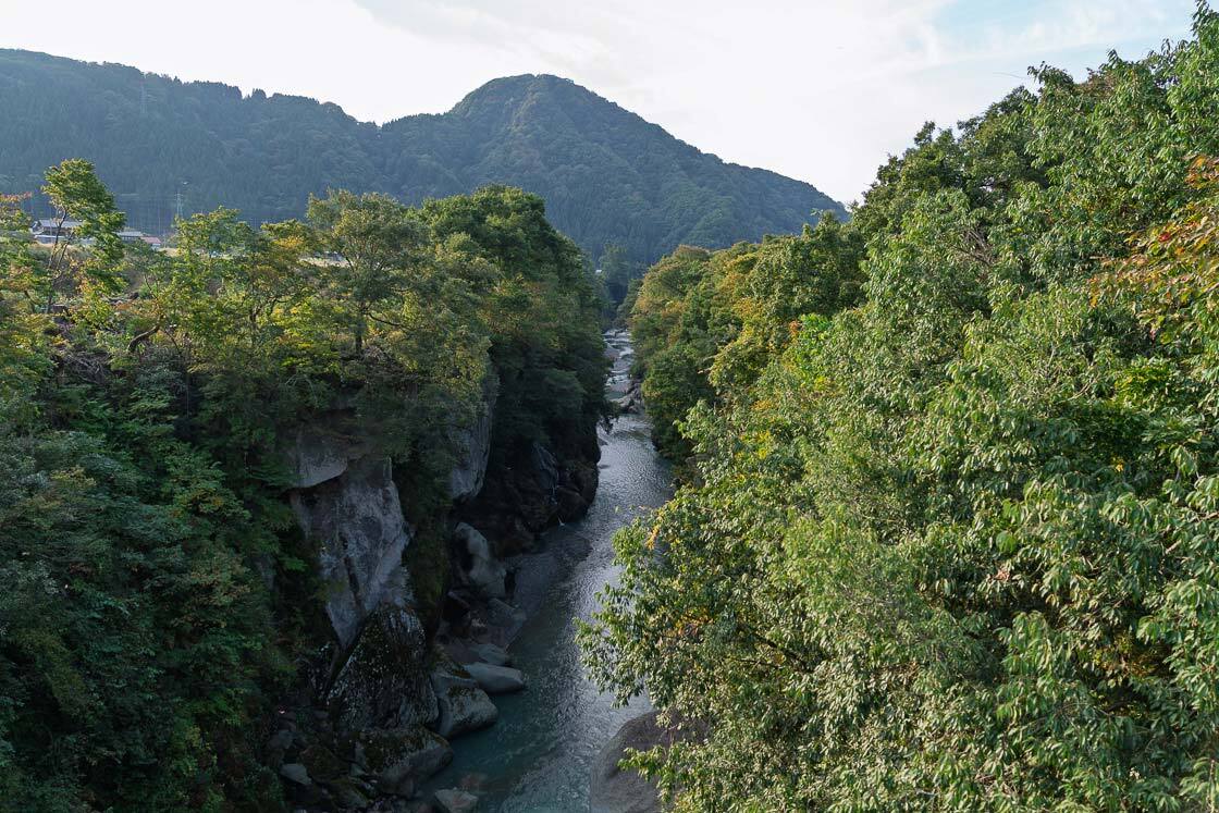 A short walk from town brings you to Kakusenkei Gorge. The Ayatori Bridge spans the ravine in an oddly constructed way that somehow works, giving your first glimpse of what's below. Moisture from the rushing river has covered every surface in moss, creating something that looks pulled from a Ghibli film. The sound of water is constant, and with dappled light filtering through the canopy, the effect is immediately calming. Benches are positioned at intervals along the footpath for sitting and taking it all in.