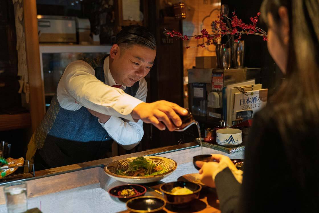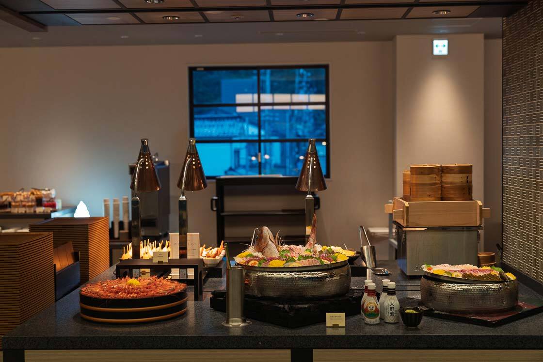Opened in August 2025, Yamanaka Onsen Kajikaso offers accommodation with breathtaking views of Kakusenkei. The buffet dinner in Restaurant Ryusai features an overwhelming selection from traditional Japanese foods like sushi and oden to kid-friendly options and vegetarian dishes. Enuma Station, run by Kazuyuki Kuchide and his wife, offers beautifully presented French cuisine using fresh local ingredients with a daily-changing menu. Hidden in a back street, Washu BAR Engawa is an intimate ten-seat bar where Yusuke Shimoki, Ishikawa Prefecture's first sake master, offers sake pairings in a tastefully converted old house.