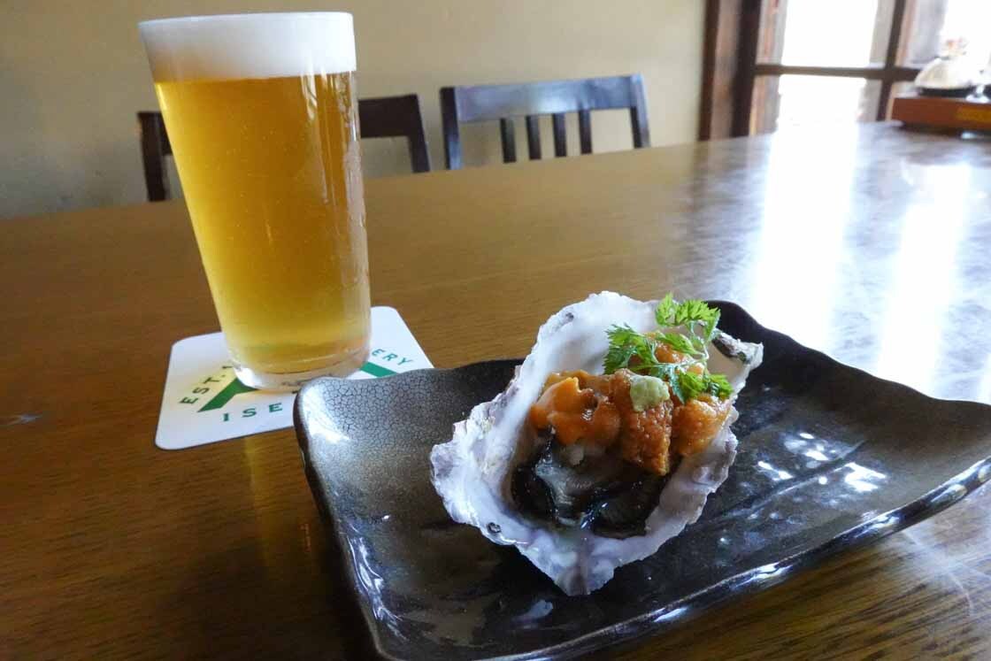 I then walked literally next door to have a pint of local craft beer at Ise Kadoya Beer. I loved the atmosphere of this place, as it is spacious with a large windowed wall at the back, but surrounded by dark wood, making it feel like I've stepped backed in time into an old tavern from the Edo period (1603-1868). I tried a lavish oyster with sea urchin, which was surprisingly buttery and flavorful, to go with my beer, a light American style pale ale - enough to refresh me and add to the journey without inebriating me to disturb the gods. Maybe visit Oharaimachi after the shrine if you fancy more than half a pint!