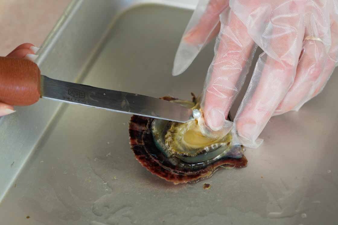 After watching a little video about the pearl creation process, it's then time to choose an oyster. There's no way to tell what kind of pearl is hidden inside, but when he brought out the net with all the oysters on it, I knew which one I wanted to pick.