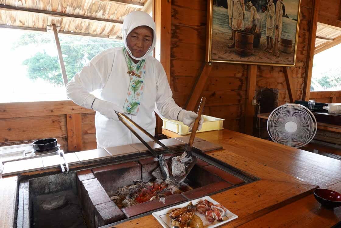 This is another fun place to interact with the ama divers and show them your support. The reception is like a mini museum of ama history, and you are then guided to a hut where one of the ama cooks a fresh seafood meal on the grill in front of you.