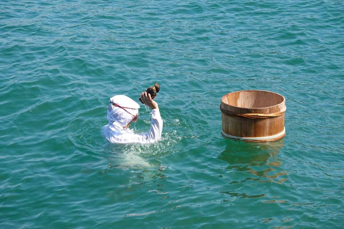 Ama in Japanese literally means "sea woman", and they will free-dive to depths of 15 meters, and sometimes more, in minimal gear. While these days ama often use wetsuits, that and their diving masks are the only diving equipment they use. Records of Ama diving go back to the year 927, and they were traditionally tasked with collecting seafood, and bringing abalone for shrines and emperors.