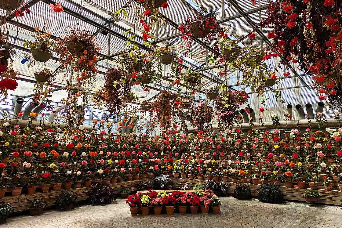 I was happy to find that the greenhouse was kept at 25 to 27 degrees during the day, so I comfortably walked around the 9,000 square meters of flower displays. Of the four rooms, the first and last are the main ones for begonias, with both hanging and potted varieties. The middle rooms have a variety of other flowers to walk through and enjoy, with the final room having a little cafe for a quiet moment among the flora.
