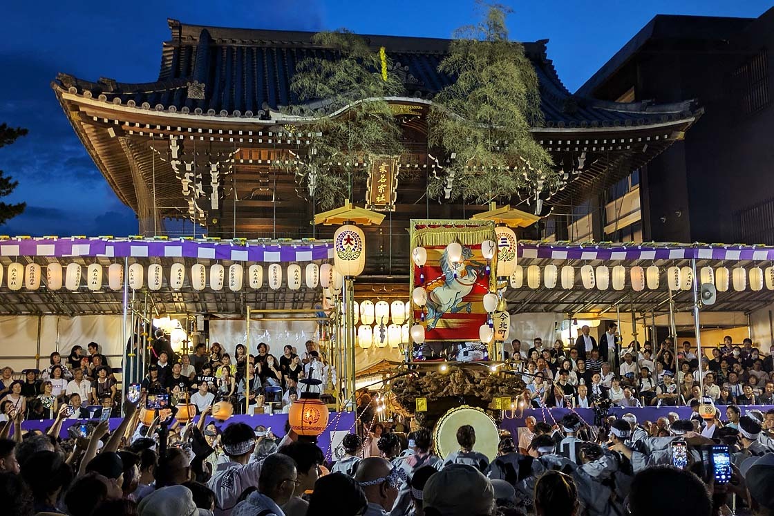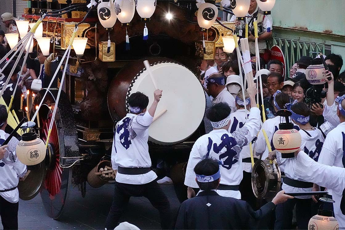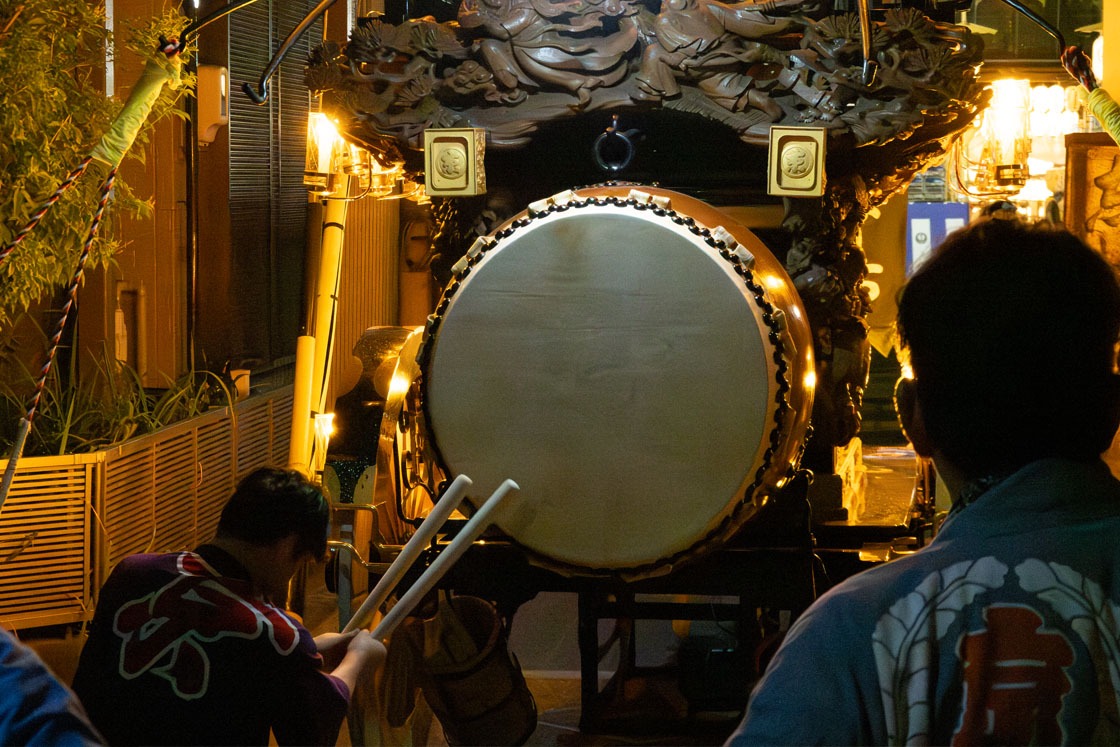 Each float, called a "saisha", is equipped with taiko drums and kane gongs, and represents a different neighbourhood, adding up to a total of 40 saisha. But I was surprised to find out that the saisha started making their rounds, from much earlier on in the day, as I saw a few loudly hammering at their taiko drums going through the streets on my way to take a break before the 2am start. Pretty much everywhere I went between the station and the shrine was filled with the sound of taiko drums, kane gongs and the loud and rhythmic voices of everyone involved, truly earning it the name of the noisiest festival!