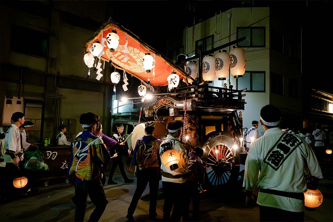 The Ishidori Festival is held every year on the weekend of the first Sunday in August. It begins with an event known as "Tatakidashi". The first Tatakidashi is at midnight on Friday, with a second once again on Saturday night (technically Sunday morning, as that one begins at 2am!).