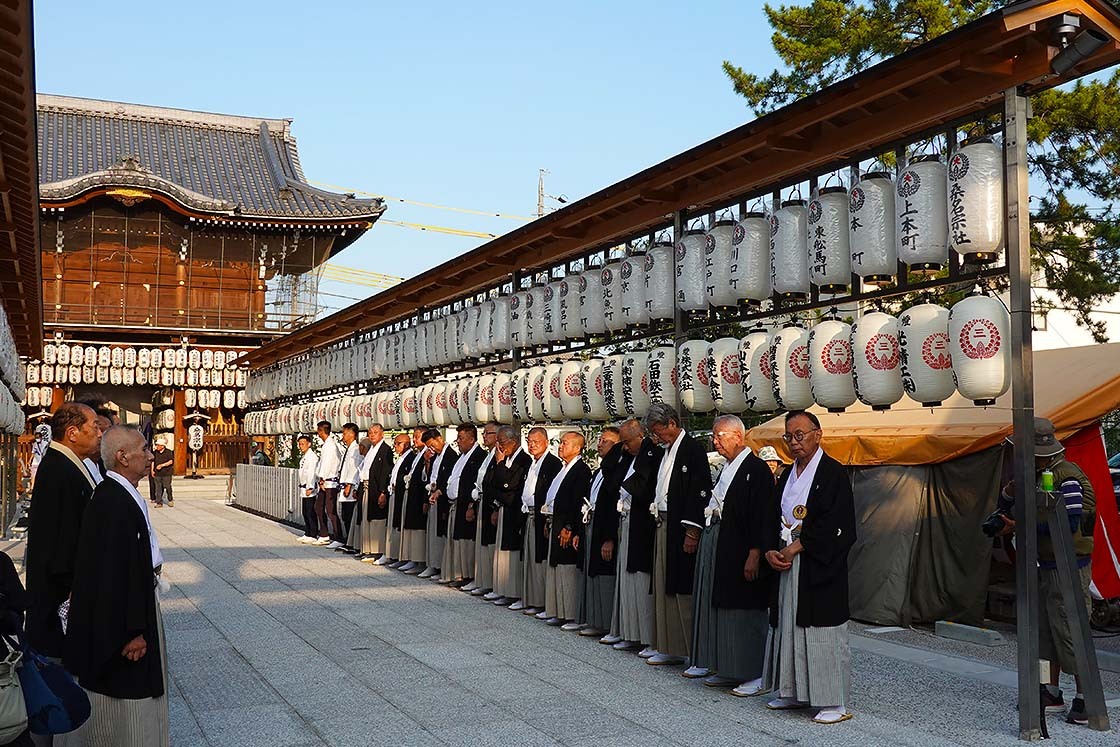 I then waited for the performance to begin! Most people stand at the shrine entrance where you can view the performance for free and get up close. From 6:30pm, the saisha, lined up on the street to the south, come and perform in front of the main gate, then head out towards Hachiken Street.