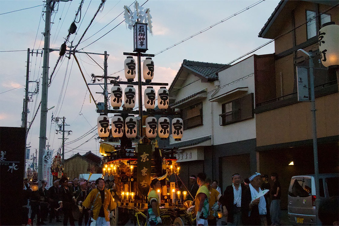 When I arrived at the Kuwana Sosha Shrine torii gate just before 2am, there was anticipation in the air as the participants crowded around their three saisha. Then they nodded to each other and the drumming began. The lanterns on the saisha lit up the street, accompanying the sound of the drumming to create an atmosphere like no other.