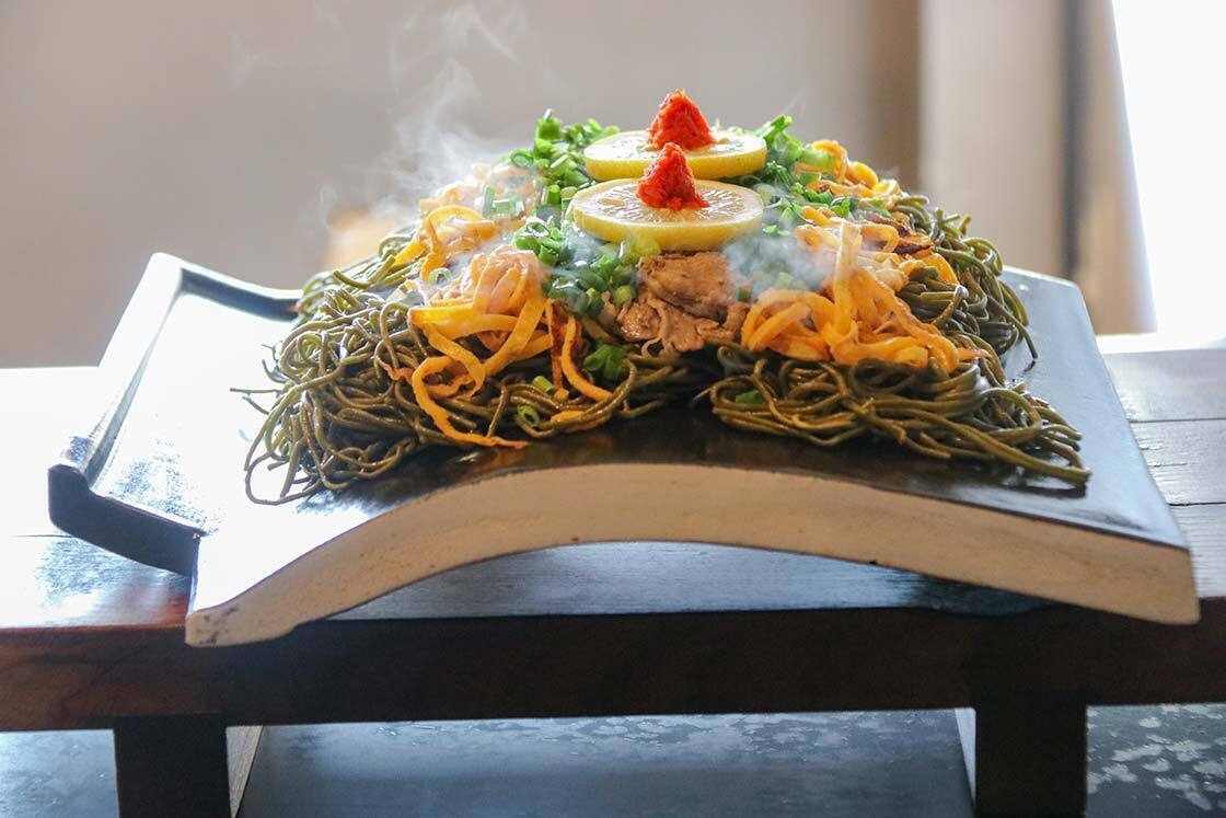 I stopped for lunch along the way at Yanagiya, a restaurant specialising in kawarasoba, a local specialty of Yamaguchi. Kawara is the Japanese term for ceramic roof tiles, and kawarasoba consists of soba noodles served on top of a piping hot tile. I thought it created the perfect balance of crispy and chewy noodles.