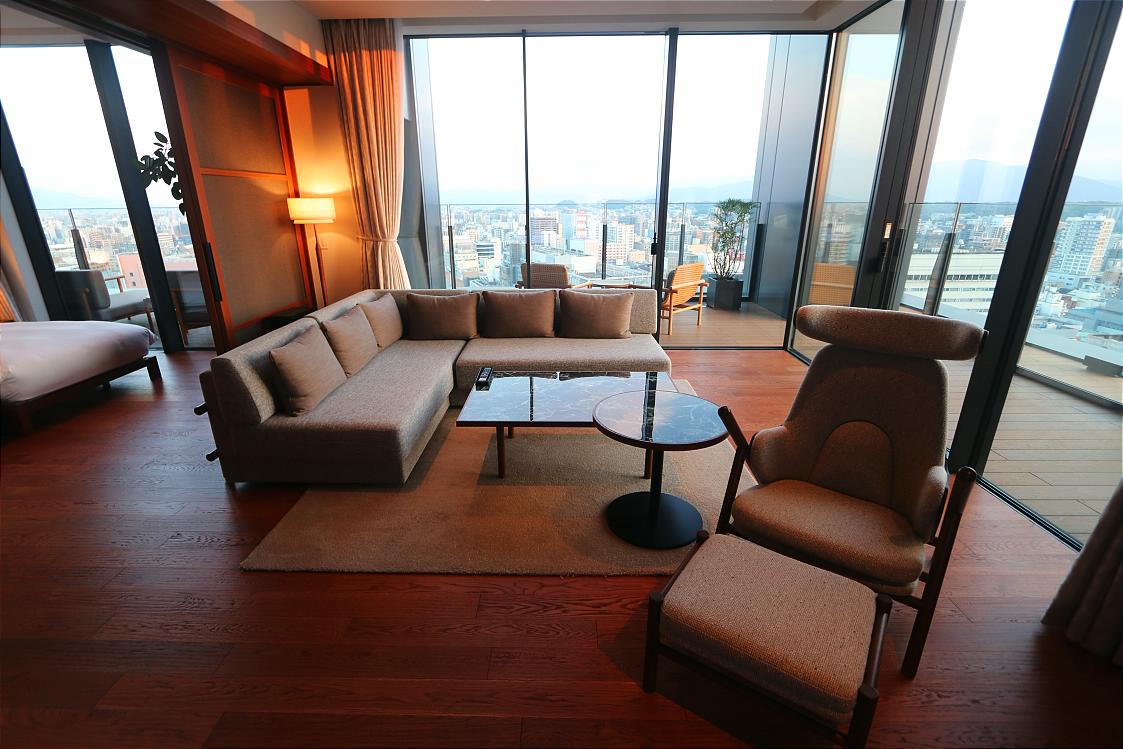 Another notable type is the ONE FUKUOKA SUITE, tucked away in a corner of the upper floor for even more spectacular views and equipped with a full-sized kitchen, making it perfect for longer stays.
