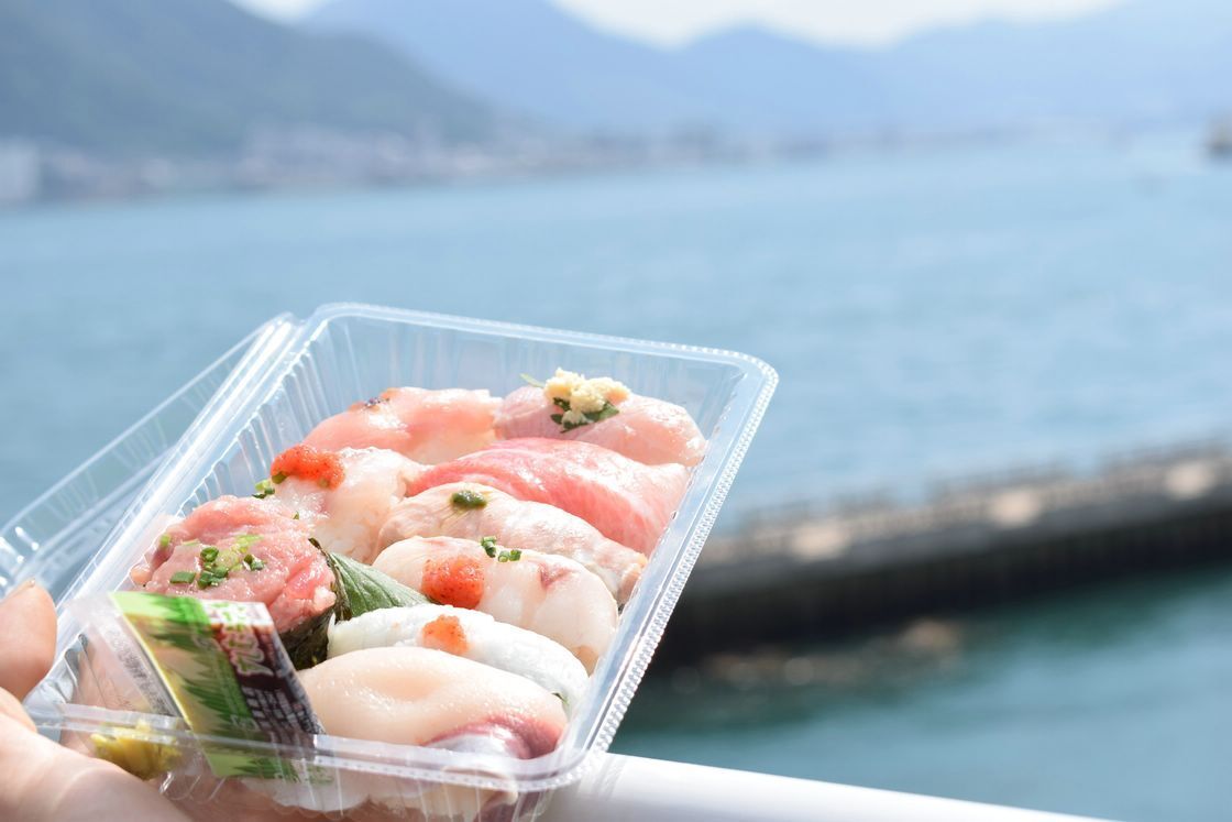 If you are not sure what to choose at a seafood stall, try communicating with the people at the market. Interaction with the people at the market is another major attraction of Karato Market. The sushi you purchase tastes even better when you eat it while looking out at the Kanmon Straits that stretch out before you. The rooftop lawn area is also recommended for its open feel.