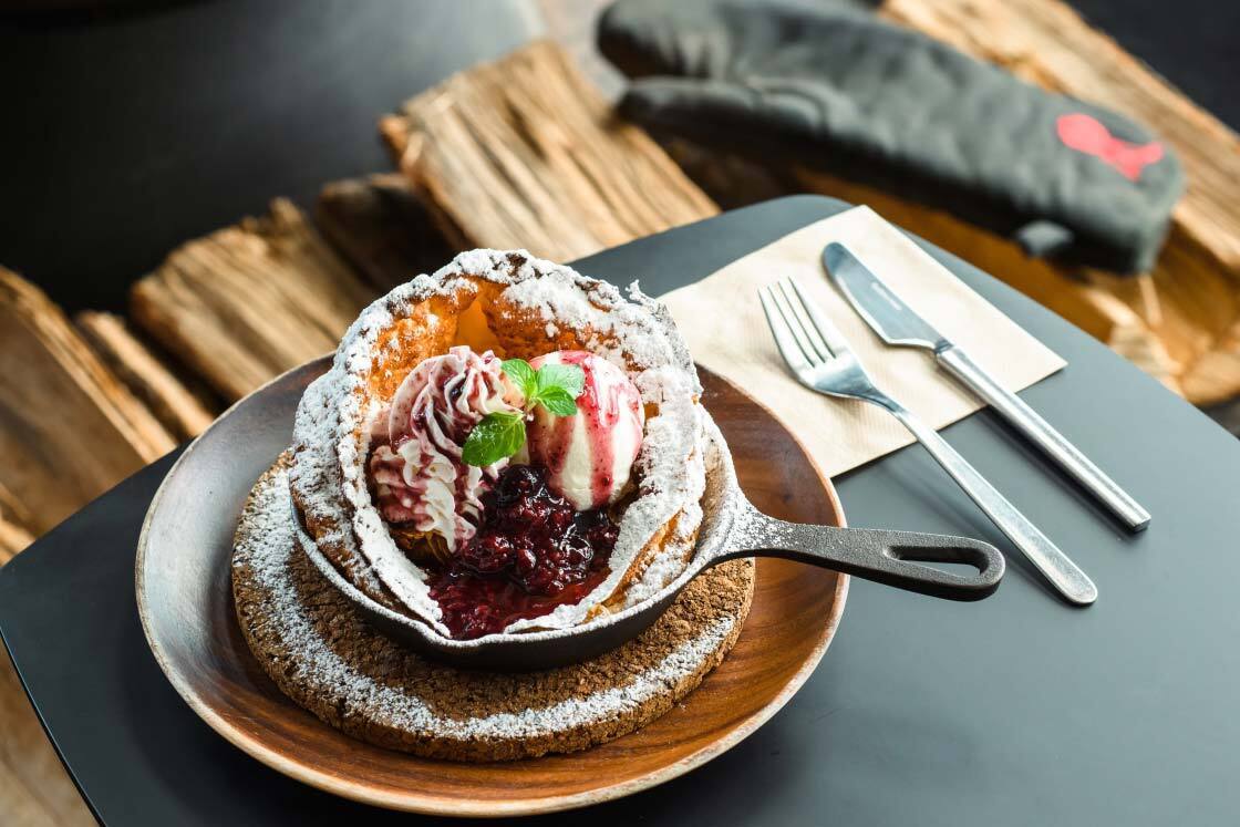 Inspired by the image of snow-clad mountains, the colorful fruit-topped Snow Mountain Pancakes are a popular specialty at the cafe. More than a few people make their way to Ishiuchi Maruyama Ski Resort just to try this dish.