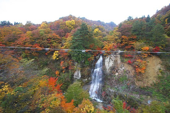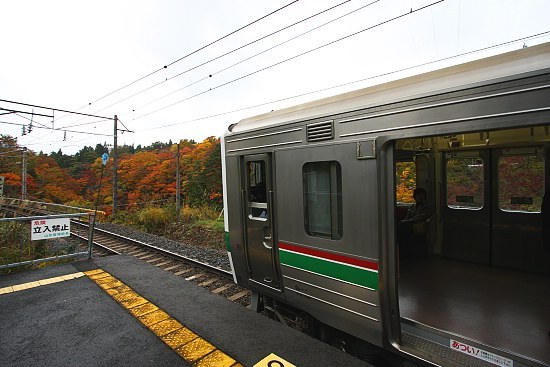 From Sendai I took the JR Senzan Line which connects Sendai and Yamagata City, and it took about an hour to get to Yamadera. Along the way I was happy to see a large amount of fall colors, which made we feel quite hopeful about the state of the trees at Yamadera. One small setback was that as the train started to approach the area around Yamadera the blue skies began to turn grey and the weather became quite overcast.