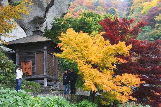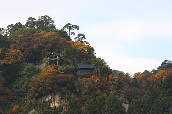 After arriving at the Niomon Gate visitors will enter the main cluster of temple buildings in Yamadera's upper region. This area has a large number of colorful trees and offers fantastic views of the area below and the neighboring mountsides. Travelers looking for fall colors will surely not be dissapinted after arriving at the top of Yamadera. However, a few of the shop keepers commented that this year has not been as vibrant as previous years.