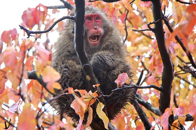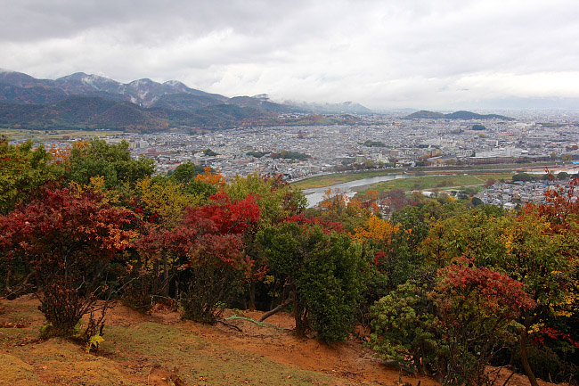 I made my second stop of the day at the popular Monkey Park on the south side of the Katsura River. While the monkeys are generally the main attraction here, the many of the trees in the park were showing lovely color today, and the view from the highest point in the park was impressive.