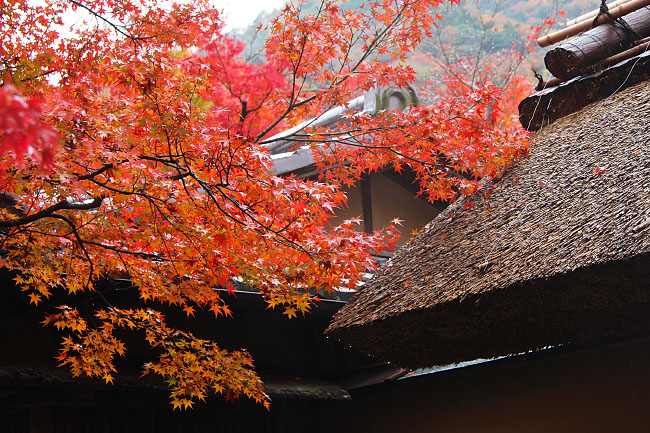 My final two stops brought me north, first to the beautifully understated, yet stunning Jojakkoji Temple. Again, the foliage permeating the hillside paths of the temple grounds was at its peak color, making a canopy of red and yellow all around the temple's famous gate. Continuing beyond the gate, I was surprised to find that the main hall is actually currently being completely rebuilt from scratch, and will remain under scaffolding until October of 2016. But despite the construction, the grounds were still stunning today, and certainly still worth a visit, especially during the peak of autumn color.