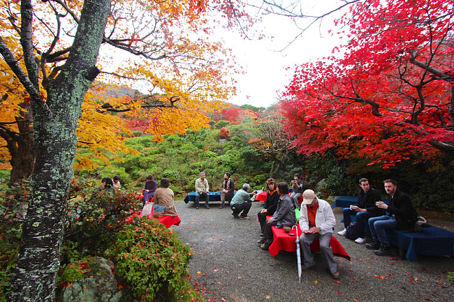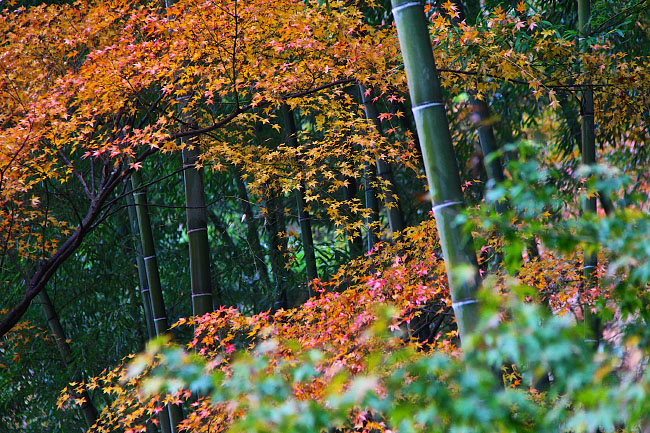 Though the weather was a bit wet today, the autumn colors in Arashiyama today were absolutely at their peak. All over the district's hills, temples and garden the colors were breathtaking. If you are still hoping to catch some autumn leaves in Kyoto this year, it is safe to say this would be an ideal week for it.