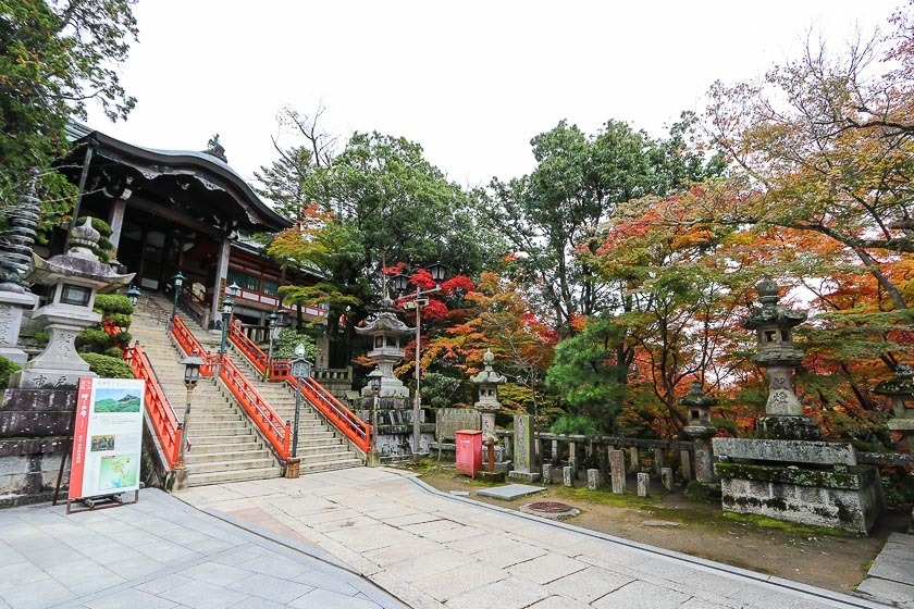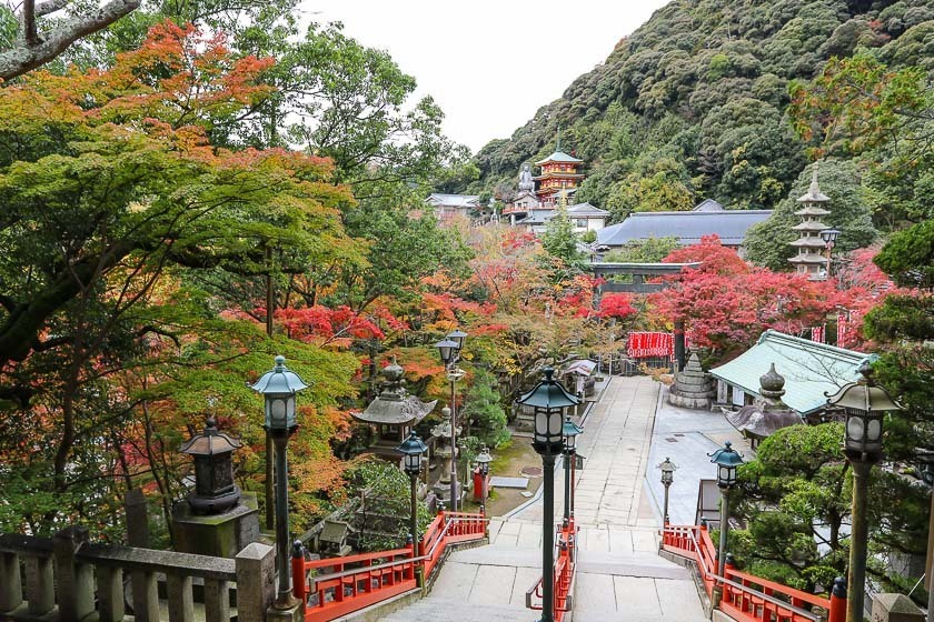 Shigisan Chogosonshiji can be reached by hourly buses from Oji Station. The one way journey takes about 20 minutes and costs 360 yen. The Shigi-Ohashi bus stop is a short walk from the entrance temple.