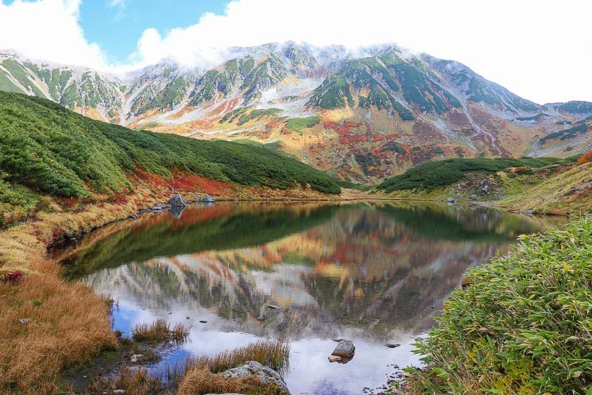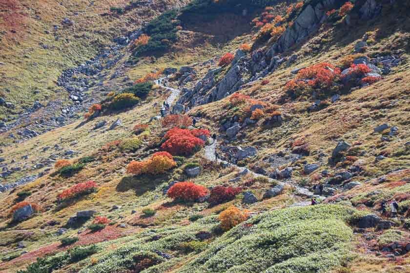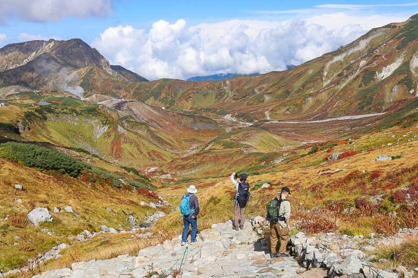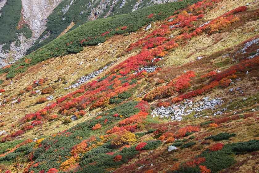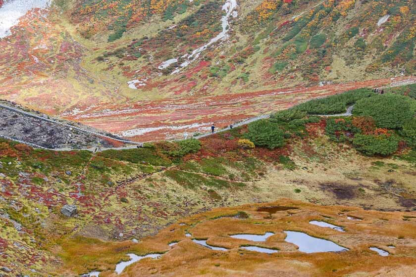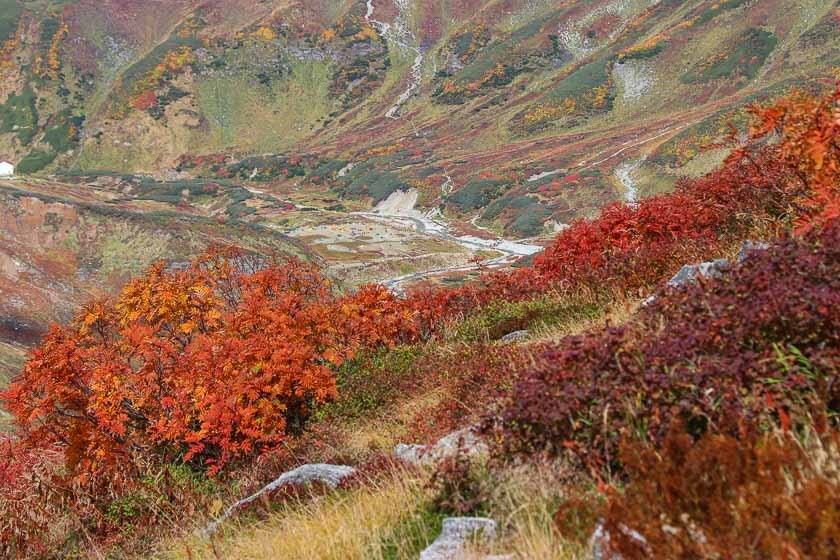 About a week ago, Schauwecker did our first 2025 autumn color report from Daisetsuzan in Hokkaido. Today, I made my way to Murodo, the tallest point along the Tateyama Kurobe Alpine Route and also one of the first few places in Japan to see the seasonal foliage, to see how the colors were faring. I found the colors at Murodo, which is located at 2450 meters, to be at their peak, while the colors a few hundred meters below were just starting to change. Below the 1500 meter level, everything was still green and it would probably be a few more weeks before the colors reach that elevation.
