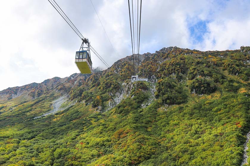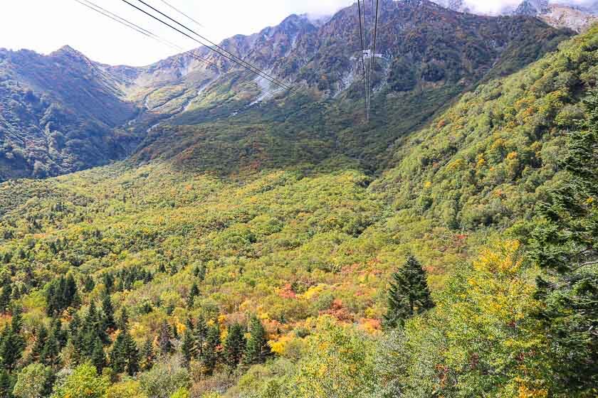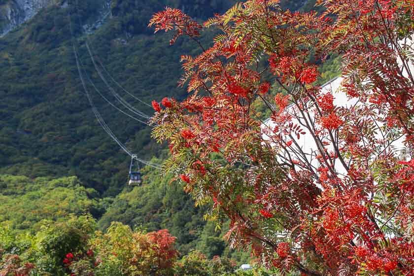 Moving down from Murodo, the Tateyama Ropeway is the longest single span ropeway in Japan and it traverses the 1800-2300 meter elevation. I found the colors around the upper station of the ropeway to be similar to Murodo, but were just starting to change below the 2000 meter mark.