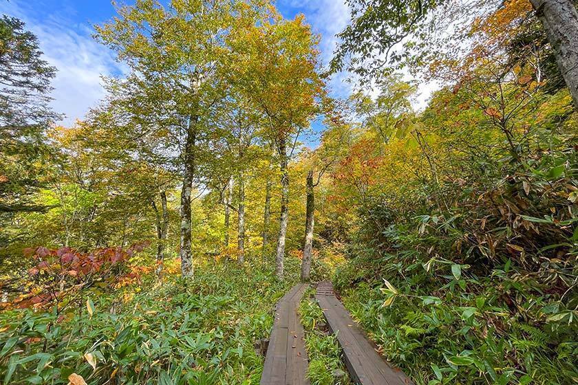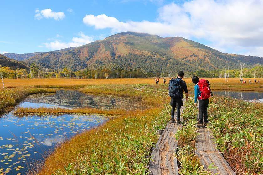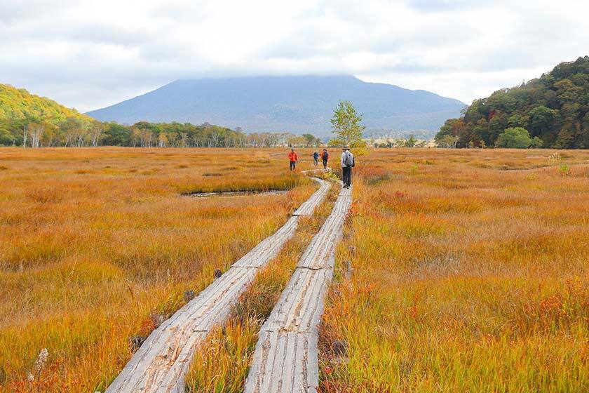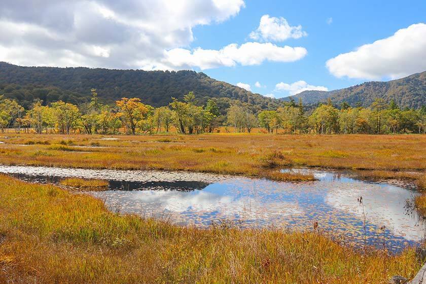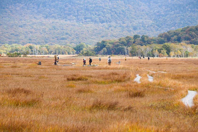 Ozegahara Marshland is located in the national park, and it is one of the most well-known sites. The marshland is situated at about 1400 meters in elevation, and the grasses there turn from green to golden brown in autumn.