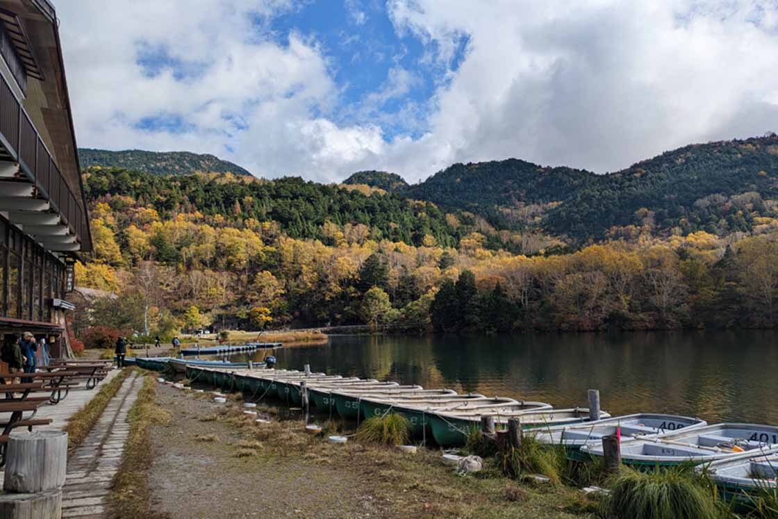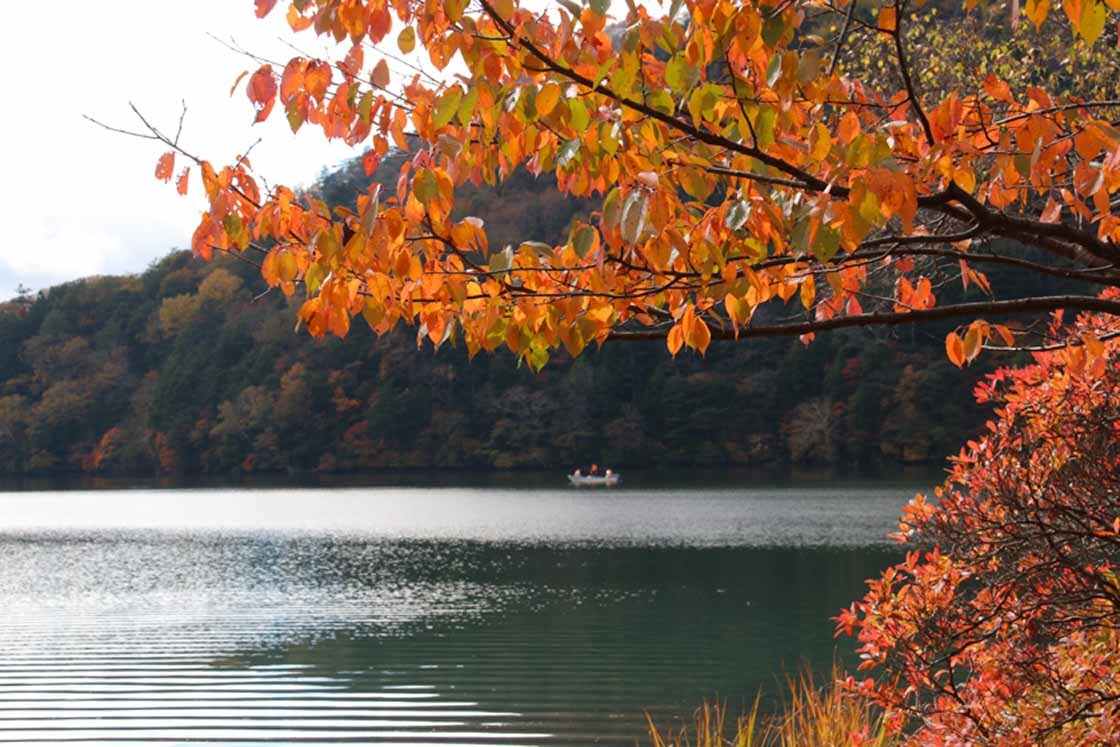 Next I headed to the small hot spring town of Yumoto Onsen to see its lovely Yunoko Lake. Being a bit higher in elevation, at 1478 meters, it was not so surprising to see that the leaves were already fading to brown and some falling, particularly those covering Mount Toyama. Looking towards the east from the northern shore I could see a lot of pretty yellows painting the landscape, though.