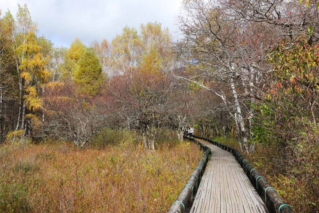 I then started heading to lower elevations, stopping at Senjogahara Marshland. This spot is popular for its reddish yellow grass and bright yellow larches. While both were visible, overall the landscape felt a little before its best viewing, as there were not many reds and oranges complementing the yellows.