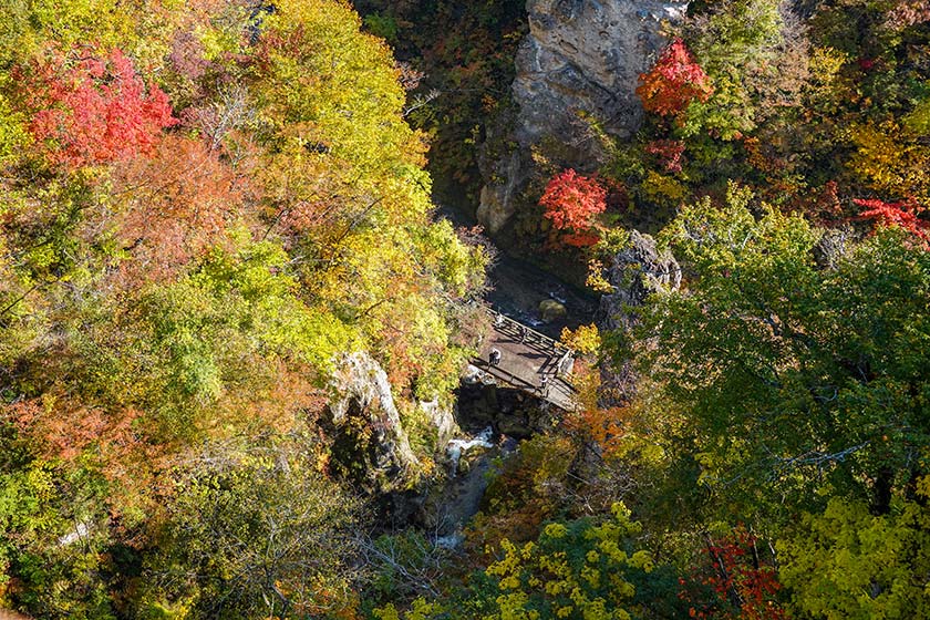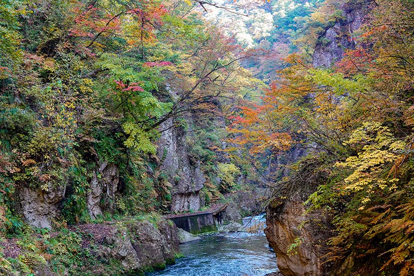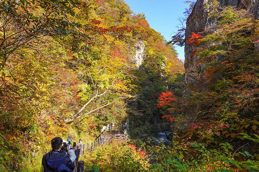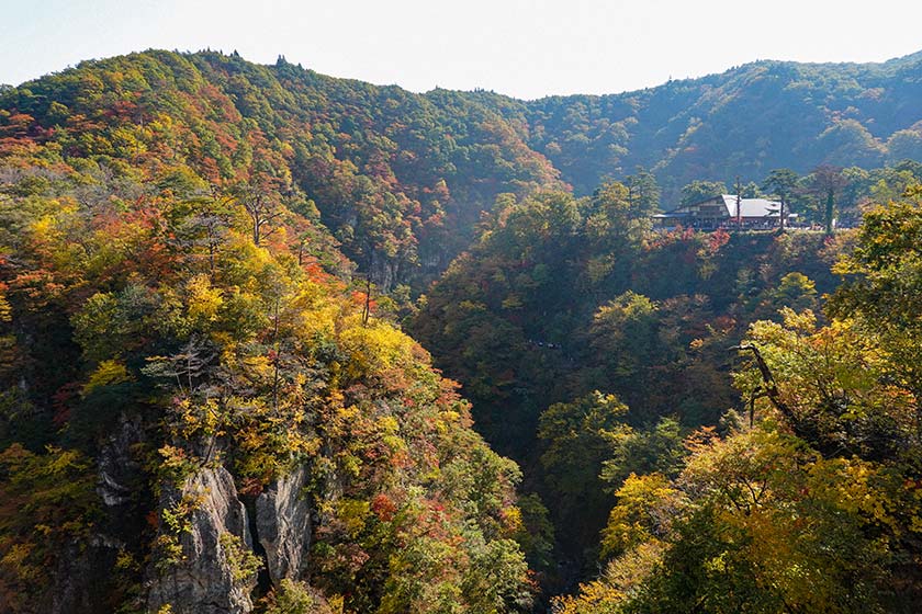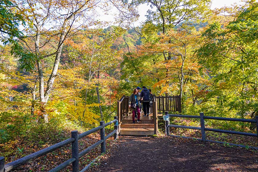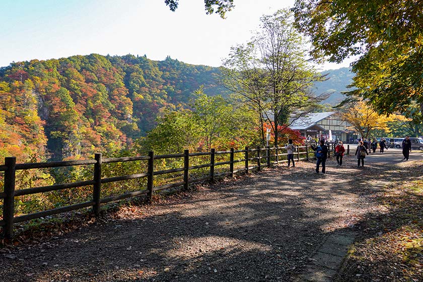 There used to be trains going to Nakayamadaira Onsen Station, the closest train station to the gorge. However, train service beyond Naruko Onsen Station to Shinjo Station in Yamagata Prefecture has been temporarily suspended due to damages from heavy rains last year. Buses provide access between Naruko Onsen and Shinjo instead, but departures are infrequent.