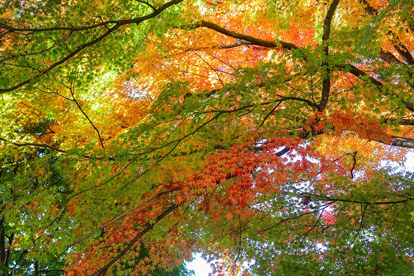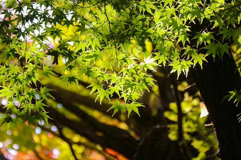 I started my day bright and early at Momiji Tunnel, a small area with many maple trees. The leaves here were the least developed of all the ones I saw today, only around the 50 percent mark. I expect more green leaves to change colors over the next few days, and for the trees to reach their peak colors next week.