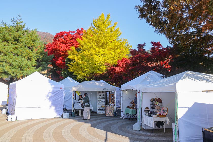 Until November 30, 2025, there is an autumn color festival near the Momiji Corridor. During the festival period, the trees are illuminated until 21:30. Handicraft shops and food vendors set up shop around the entrance of the corridor and along the main street.