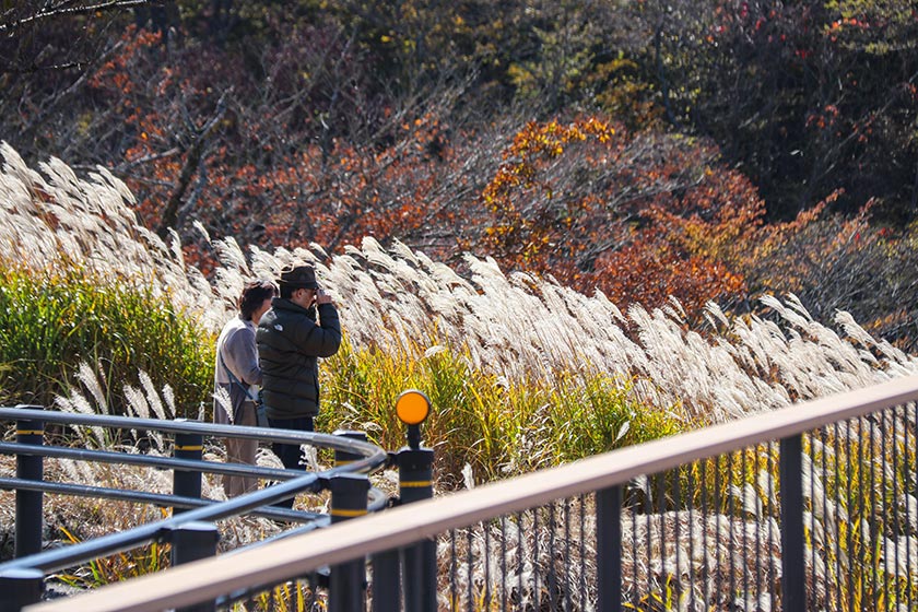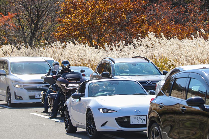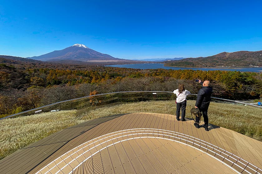 Next, I headed over to Panorama Dai, an observation deck near Lake Yamanakako. The observation deck was renewed last year, and now offers visitors a comfortable place to see and appreciate the views. Pampas grass or susuki can be seen around Panorama Dai, and they were at their fluffy autumnal best when I visited. Note that there is limited parking at the observation deck and the road leading there may get congested on the weekends.