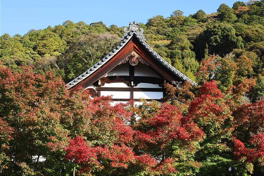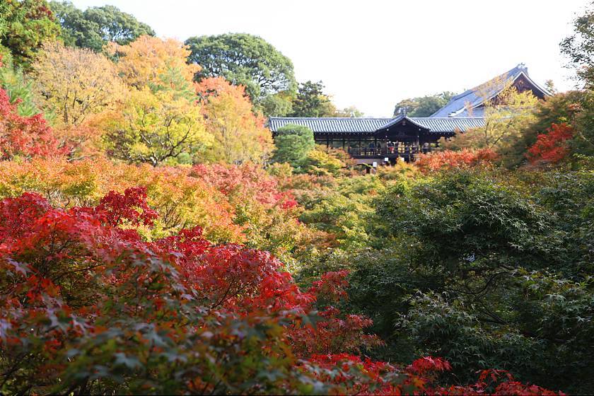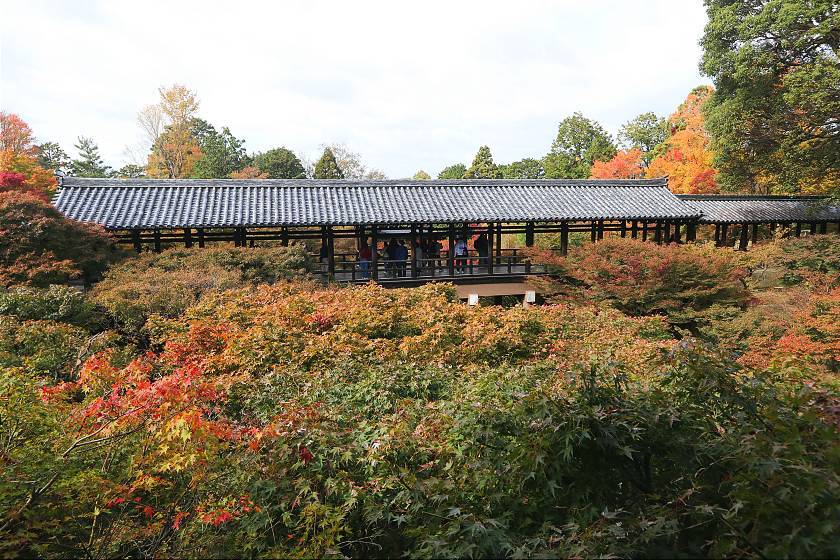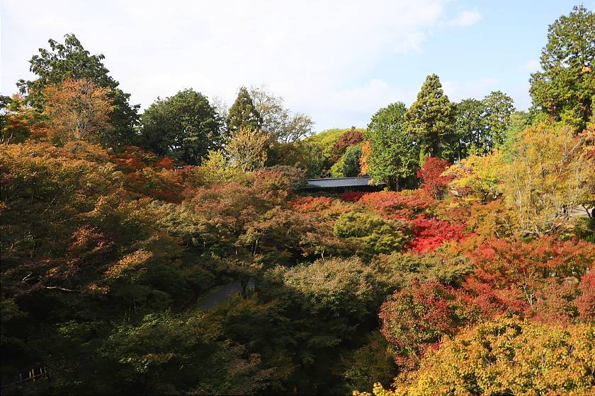 My first stop was at Tofukuji, a Zen temple complex in the southeast of the city, especially celebrated for a particular view over a valley thick with maple trees. While some colorful branches are already creating an autumnal impression - especially when seen from afar - things were still looking very green from closer up.